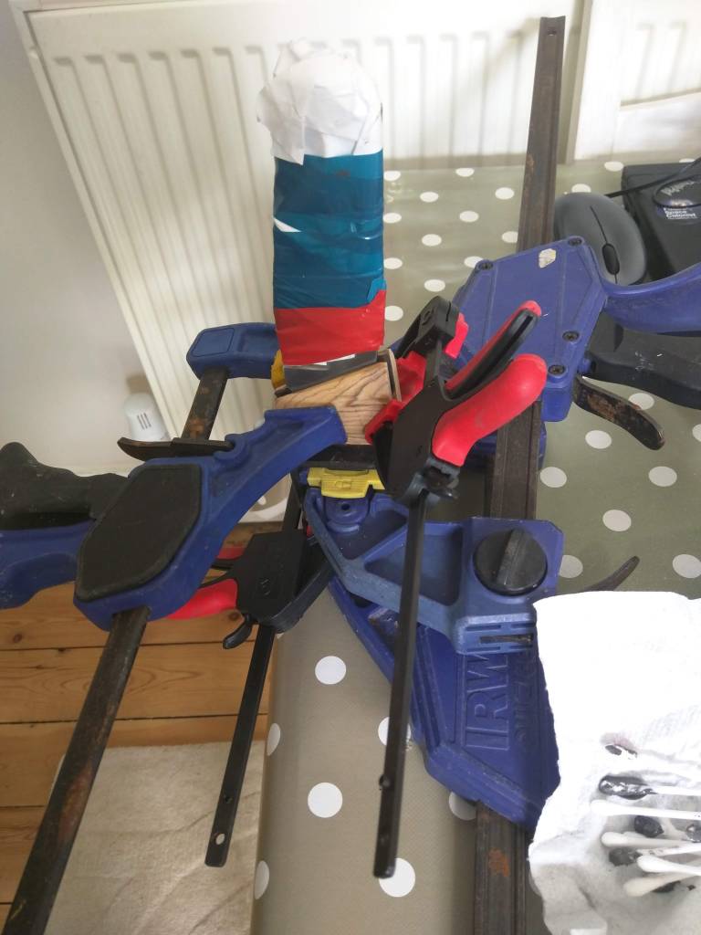 It was just a case of putting it all together now and making it look tidier, so I cut 2 pieces of the wood for the handle and glued them on with 2 part epoxy.